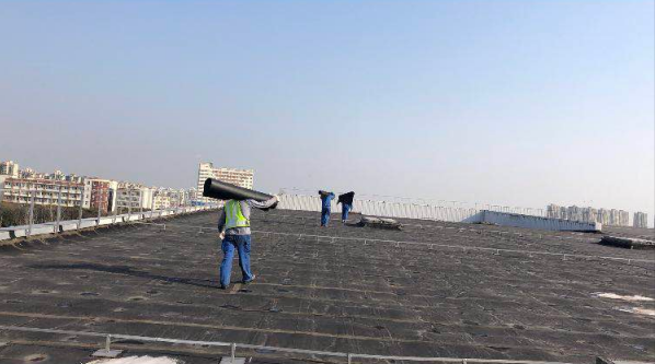 6. 已完成的防水層在沒有做保護(hù)層之前,不得有鐵器、鋼釘、鋼筋、腳手架等棱角重物在防水層上施工或堆放,以免破壞防水層;
