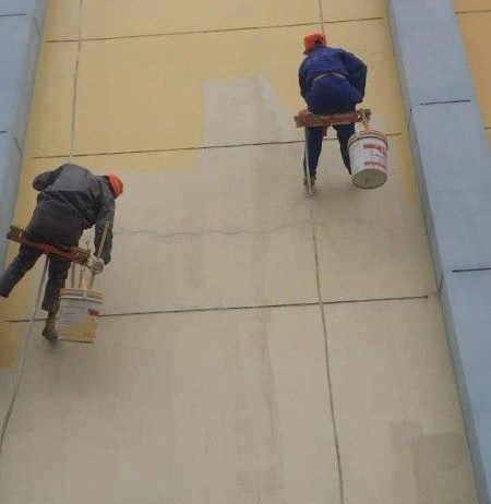 在處理好外墻墻體的孔洞、凹凸不平處、縫隙處后,均勻涂刷防水涂料。